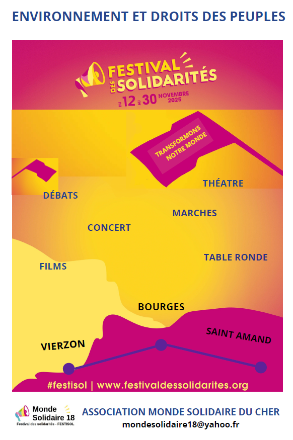 Dans notre département, le collectif Monde solidaire du Cher, dont l'OCCE est membre, organise des manifestations dans le cadre de ce festival et a choisi "Environnement et droits des peuples", pour thème de l'édition 2025.